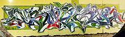 - Le «Throw-Up», ou «Flop» est une forme intermédiaire entre le Tag et la fresque : il s'agit de grands dessins de lettres, et non de signatures, pourvus d'un «volume» et de contours mais qui sont exécutés rapidement et fréquemment sans soin spécifique (pas d'effort de couleur par ex. ). Ils servent à promouvoir le nom de l'artiste d'une manière qui soit visible de loin. Certains font aussi la démonstration du talent typographique de l'artiste.
