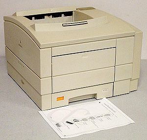 La première imprimante laser conçue pour être utilisée avec un ordinateur personnel est sortie en 1977. Il s'agit du modèle Xerox Star 8010[4]. Cependant, quoiqu'il soit particulièrement novateur, le Star était un système onéreux qui n'a été acquis que par un nombre réduit de laboratoires et d'institutions. Quand les PC ont été plus communs, la première imprimante laser conçue pour un marché de masse a été la HP Laserjet[5] 8 ppm de Hewlett-Packard, sortie en 1984. Elle utilisait un moteur Canon Inc. contrôlé par un logiciel HP. L'imprimante HP Laserjet a été suivie par d'autres imprimantes laser proposées par Brother[6] (1987), IBM…